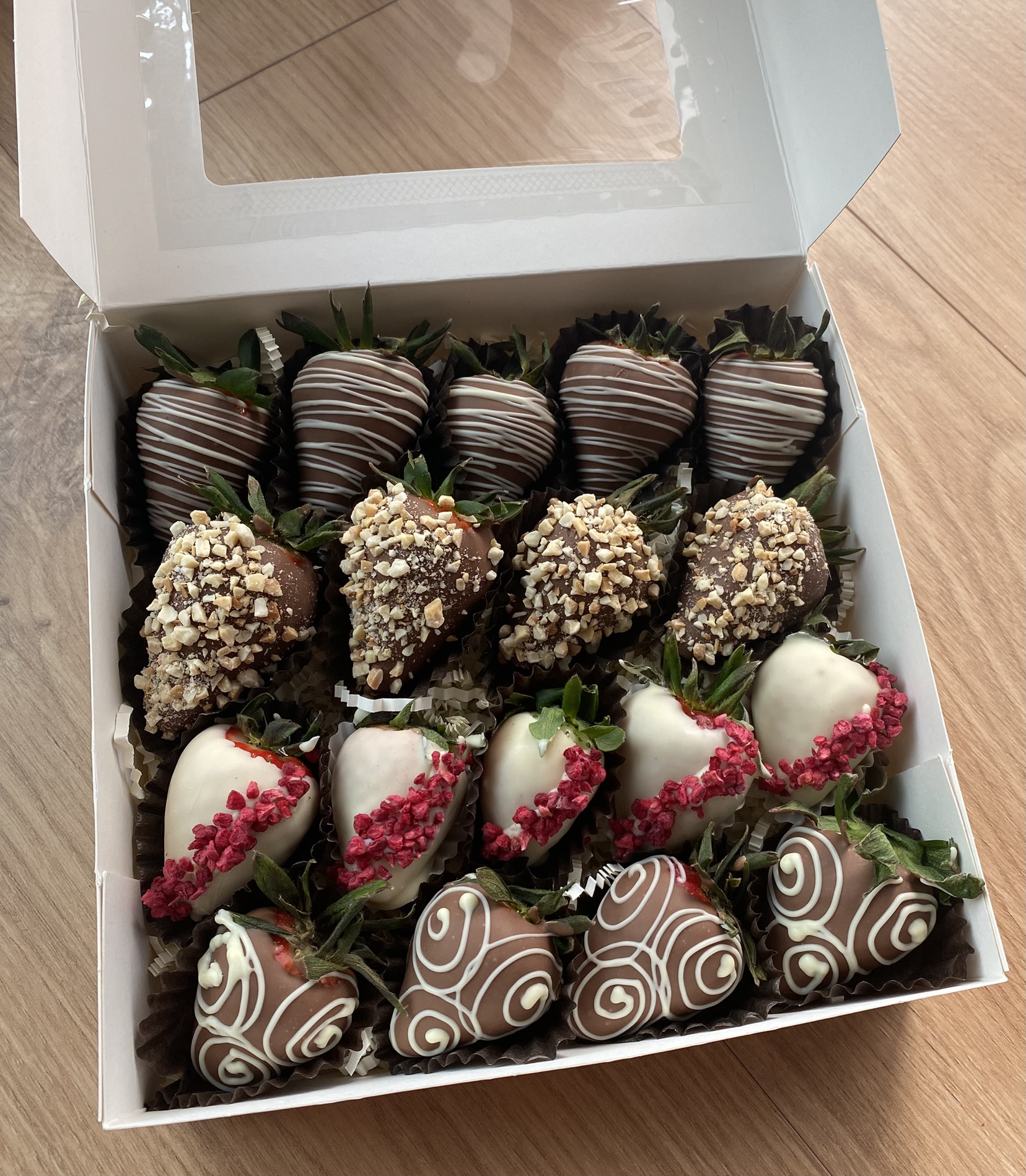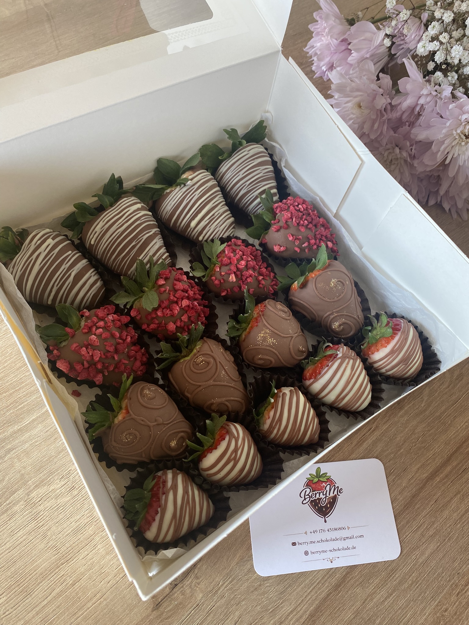 Außerdem empfehlen wir vor dem Verzehr, die Erdbeeren 15-20 Minuten bei Raumtemperatur zu lagern, damit der Geschmack der Schokolade noch zarter wird.